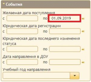 Назначить фильтр в разделе «События» — желаемая дата поступления до 01.09.2019г.:
